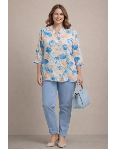 Jégselyem tunika , előnyös V nyakkal.