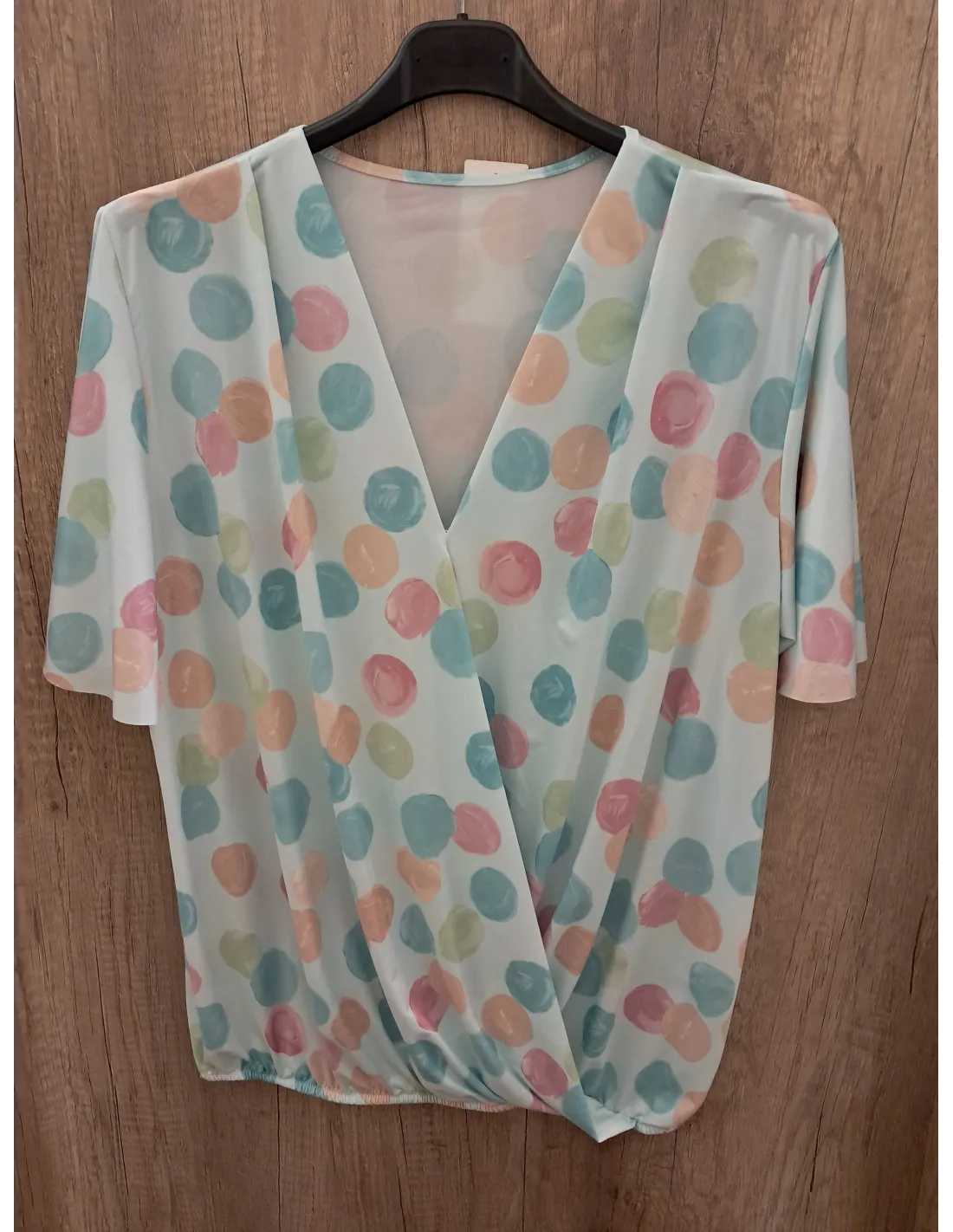 Átlapolt pöttyös türkiz felső